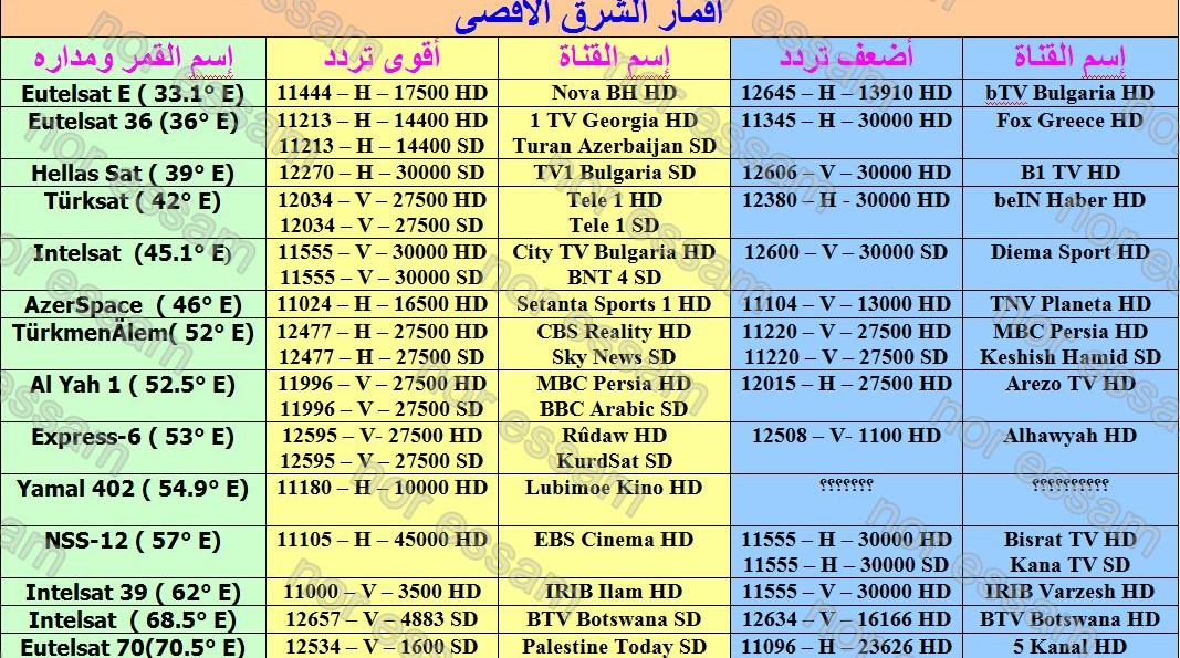 أقوى وأضعف الترددات لضبط اشارة الأقمار 2024 ،جيث يحتار بعض الفنيين وعشاق التركيبات فى ضبط بعض الاقمار. .