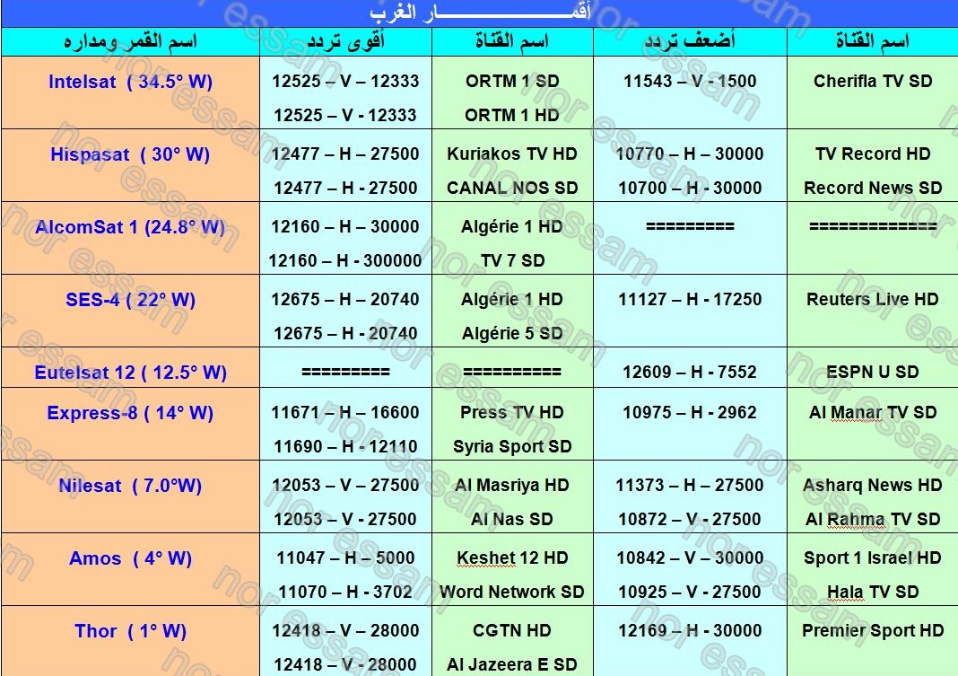 أقوى وأضعف الترددات لضبط اشارة الأقمار – 2024