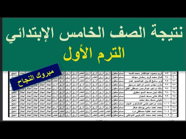 نتيجة الصف الخامس الابتدائي بالاسم