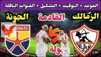قنوات مباراة الزمالك والجونة في دوري نايل والقنوات الناقلة للمباراة
